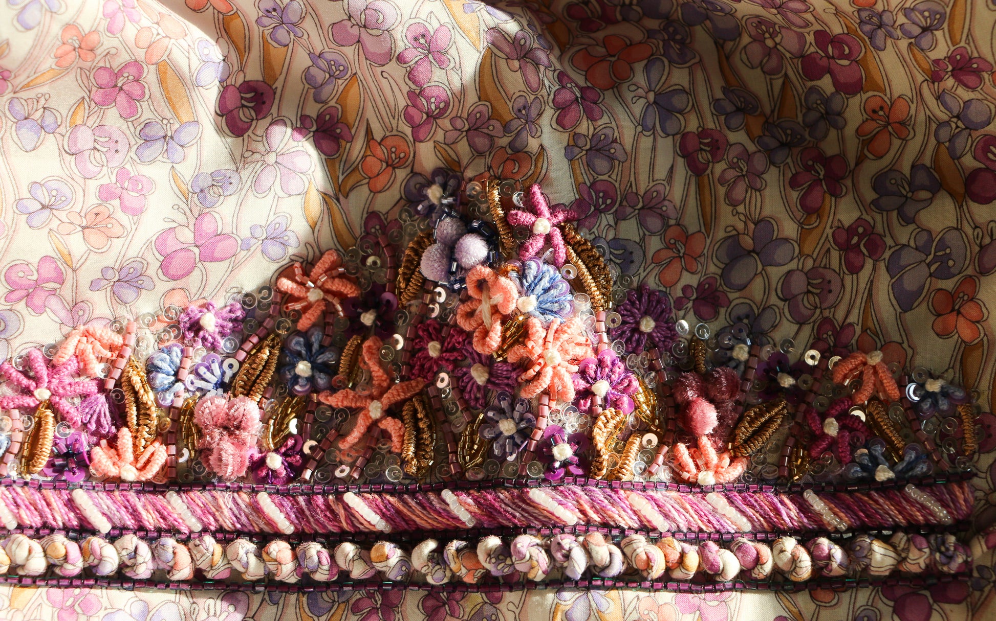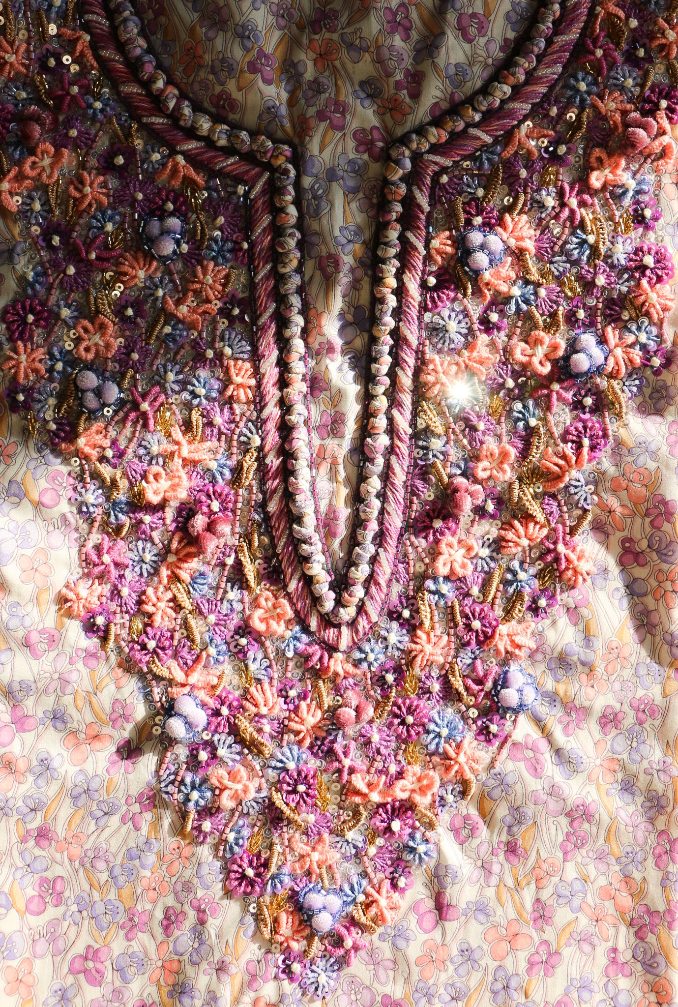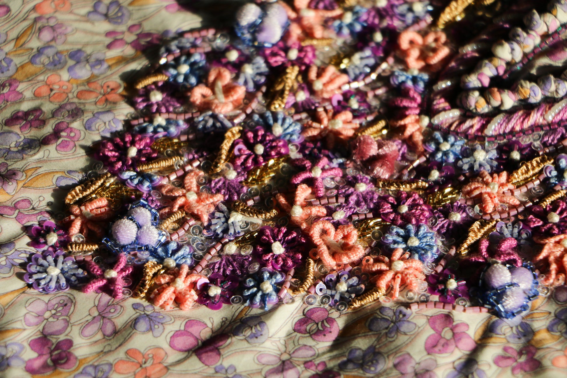 An embroidered narrative of delicate florals, unfolding like a quiet fairytale in thread, light, and longing.