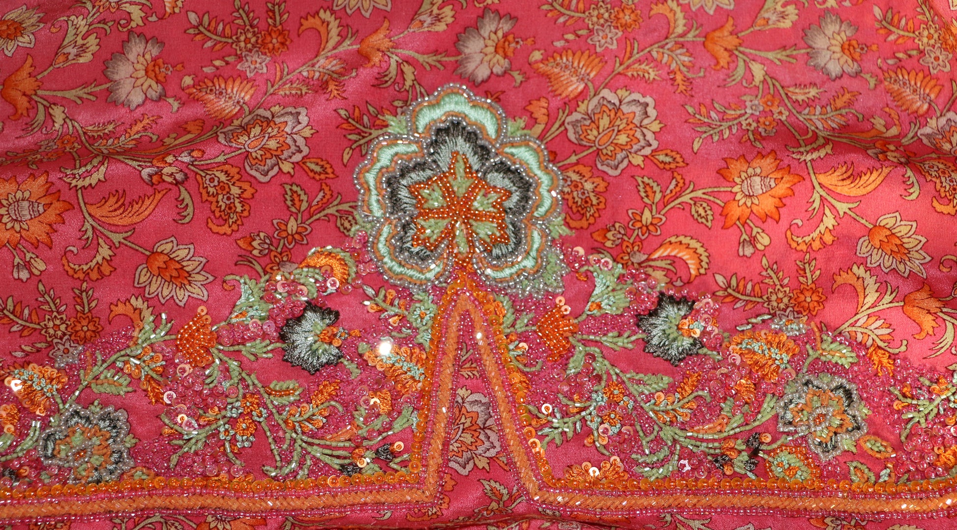 Orchard blossoms woven into silk, glowing with old-world charm and hand-embroidered elegance.